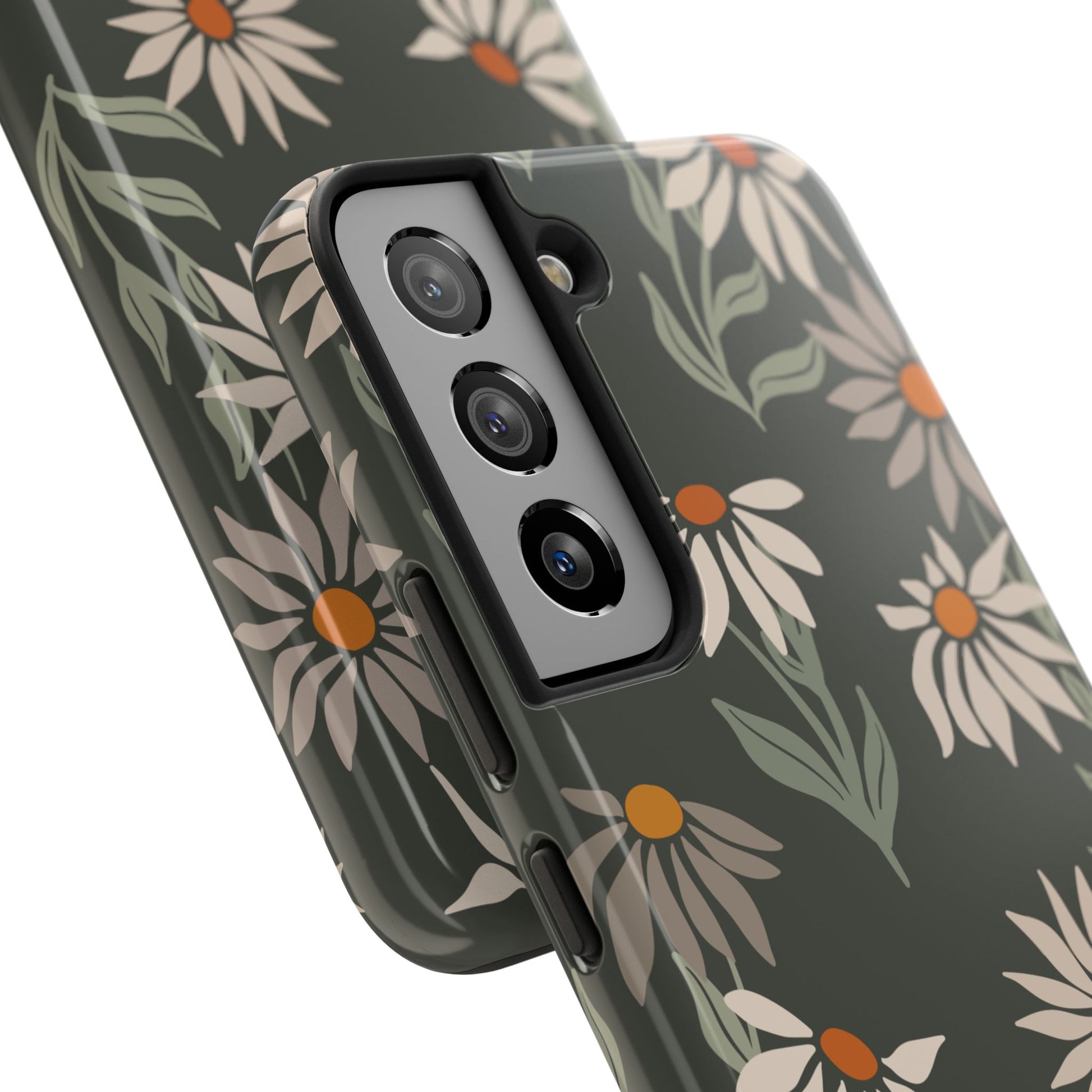 Brighten your day with this charming phone case featuring cheerful white daisies on a vibrant green background. Perfect for iPhone and Samsung users who love a fresh, nature-inspired design with a touch of retro charm. A must-have for floral and boho lovers alike!